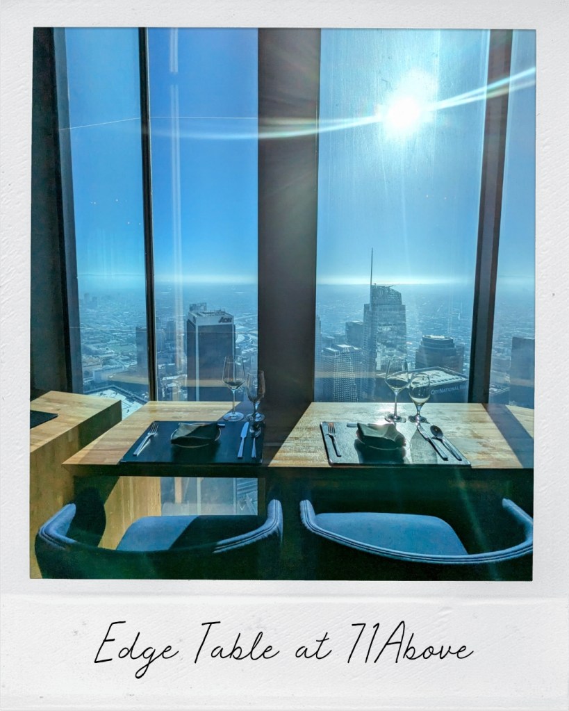 Window seating is not guaranteed but I specifically booked a reservation for 5pm (when they first open) so that we could request an edge table which gave us this beautiful front facing view of LA. I figured if we’re going to spend money on a special occasion, we might as well try to get the best seat too!